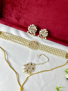 Elegant Mirror Choker Necklace with pearls and mirror studs and Mang Tikka