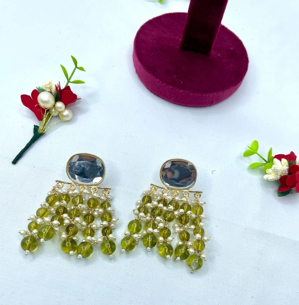 Beautiful Mehndi Colored Peals and fat kundan studs will suerly make your looks fabulous