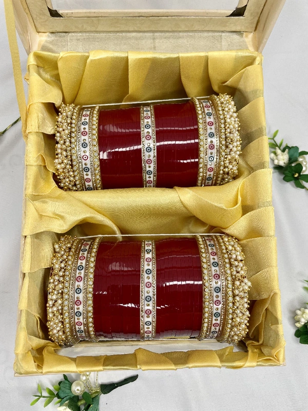 Bajre Kangan paired with traditional style bridal chuda makes this contemporary modern desing.