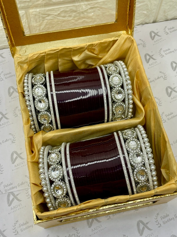 Beautiful Silver Kundan KMags along with pearl bangkes and maroon bangles