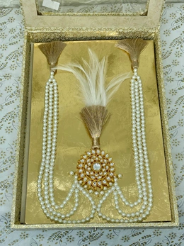 Kalgi is a symbol of royalty, an ornament that grooms often wear on their wedding day. It is similar to a brooch that sits on a groom's pagdi or safa on the wedding day. Traditionally it was an essential element for royal grooms to sport a kalgi