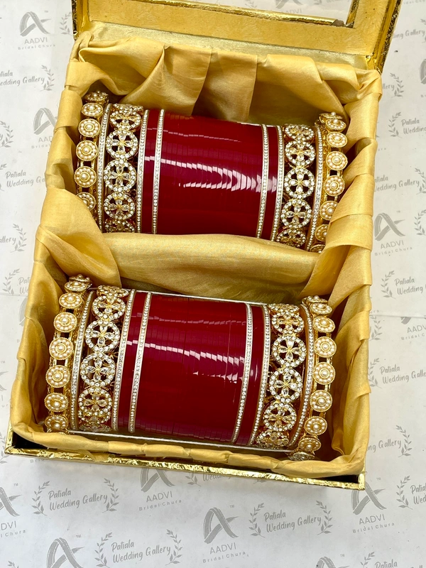AD Kangans and Pearl Bangles on the sides alogn with Blood red seep bangles