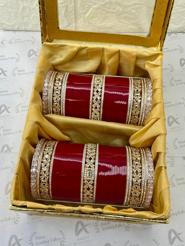 Beautiful All AD Bridal Chura with traditional Cherry Red Seep Bangles