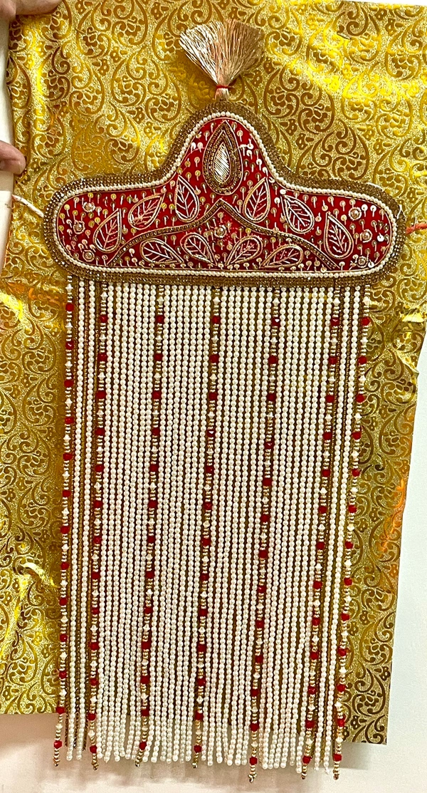 Red Sehra with peals and golden mala
