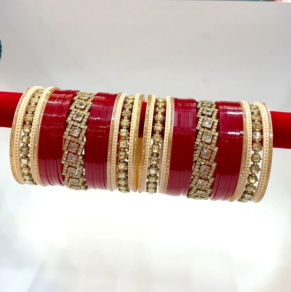 Short Bridal Chura in Red with AD Stone Kadas | Premium Wedding Chura