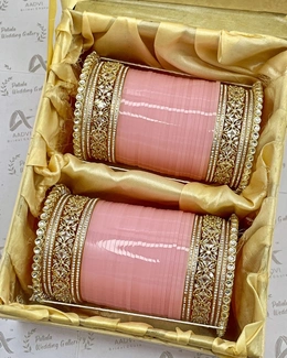 Beautiful and Elegant Pink AD Bridal Chura wirh kundan pchelli bangles in the end