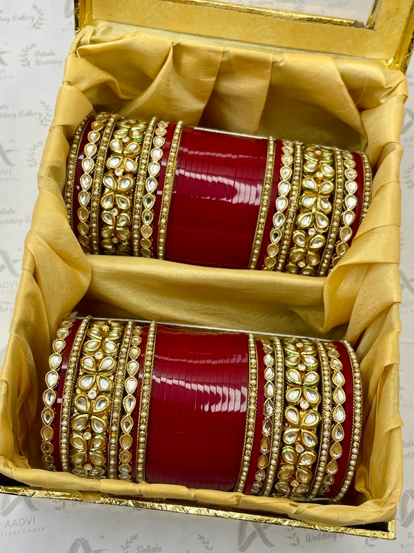Beautiful Orignal Flower Kundan Kangans with sleek drop shaped Kundan bangles and gorgeous pearl bangles makes it really beautiful chura