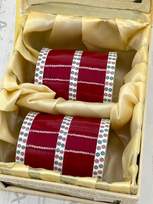 Traditional Evile Eye bangles on the sides with traditional blood red seeo bangles