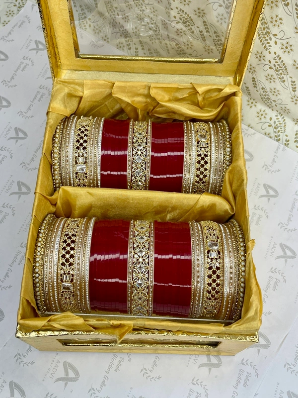 Astonishing design made with Stunning AD bangles both on sides and in center along with pearls bangles