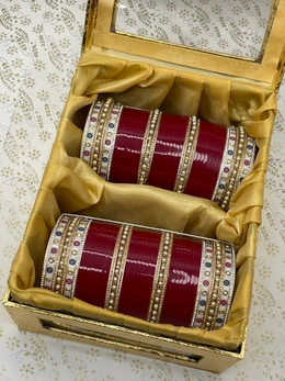 Beautiful Bridal Chuda with traditional white dots bangles on the sides