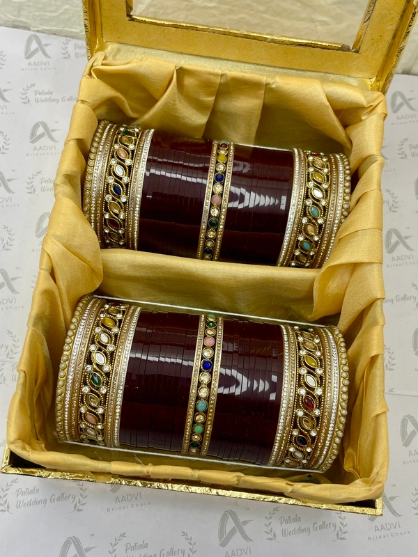 Multi Colored kangans on sides and in center along with maroon color bangles