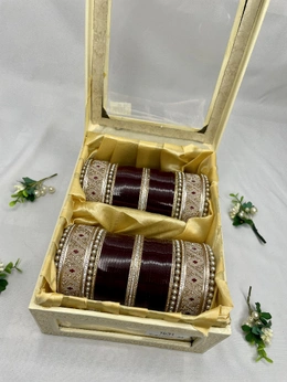 Seep Kangan made of beautiful double shade stones combined with Maroon colored seep rounded bangles for soft and anti allergy experience.