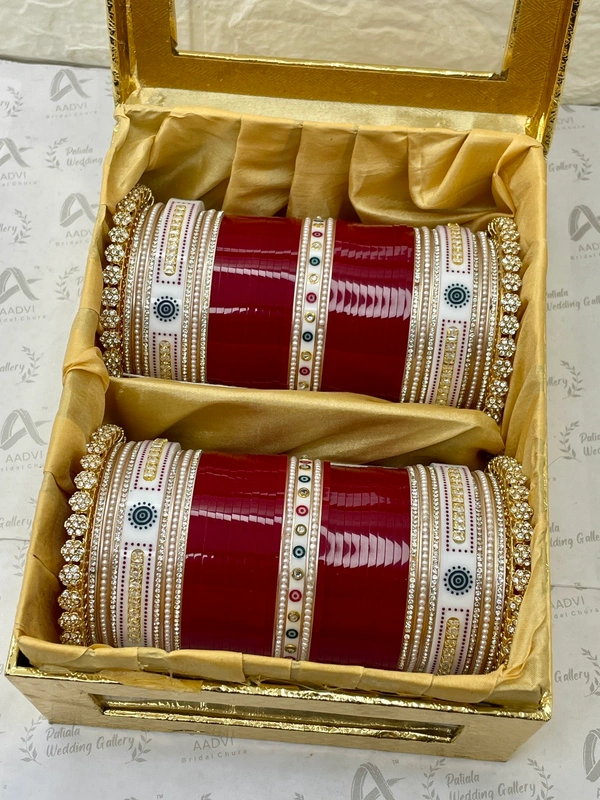Elegant AD Bangles along with flower dots traditional bangles and Crystal Pachelli bangles on the sides