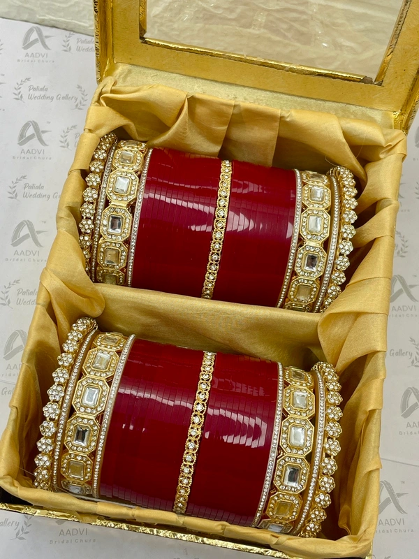 Square Cut Kundan Bridal Chura with beautiful Pachelli Bangles and center with elegant golden crystal bangles