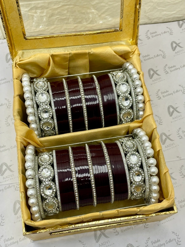 Beautiful Silver Kundan Chuda with big pearl bangles on sides to give complete chura looks