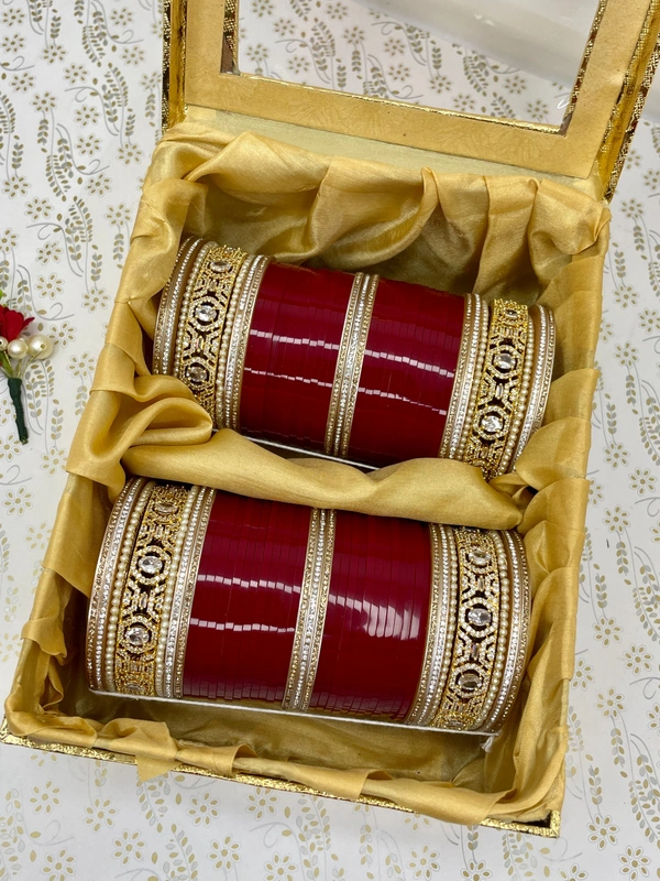 Stunning AD Bangles centered with pearl bangle and golden Nikhar and same Golden Nikhars in center