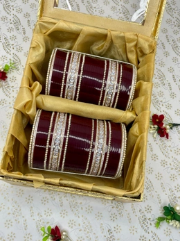 Beautiful Square Crystal Kangans centered in silver nikhars and pearl bangles both in the end and in center