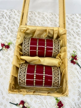 Beautiful Flower Design Kangan in mehndi polish clubbed with square and round shaped bangles makes it the true masterpiece