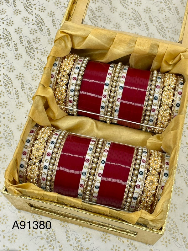 Beautiful Kundan Bridal Chuda with traditional white dots bangles on the sides