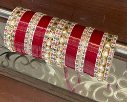 Drop Shaped Kundan Bangles along with traditional dots bangles