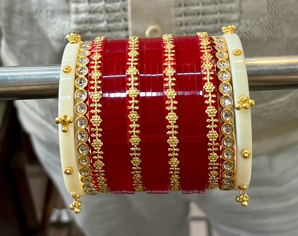 Our trending short chooda is perfect for the modern bride who wants the charm of bridal customs without the extra weight. Carefully handcrafted with premium materials, this lightweight chooda set gives you the classic red & ivory look in a sleeker, more comfortable design — ideal for pre-wedding rituals, post-wedding functions, or brides who love minimalism with meaning 💍💕