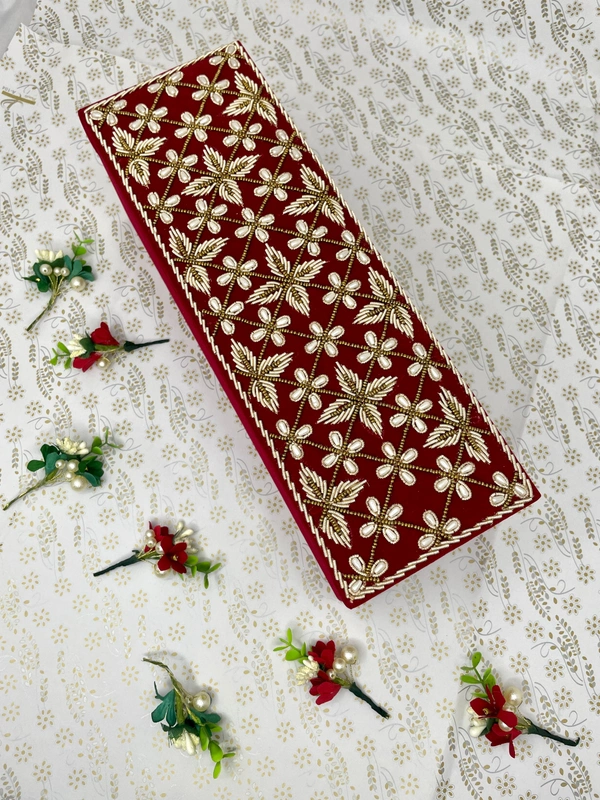 Hand Embroidered Maroon Chuda/Bangle box made with sued fabric, and hard board, so that you can keep your Chuda or precious bangles intact.