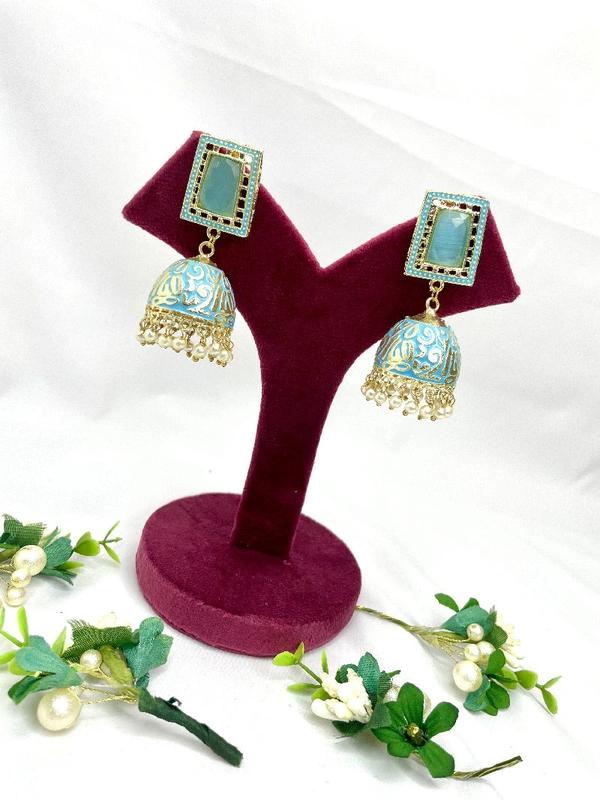 Meenakari Jhumki fitted with beautiful Mona Lisa Stone
