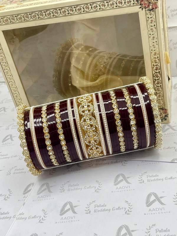 AD Bridal Chura with pearl bangkes and crystal Kangans on the sides