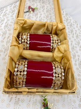 Kundan Paan Shaped bangles with kundan polki look a like bangles makes it simple yet statement peice.